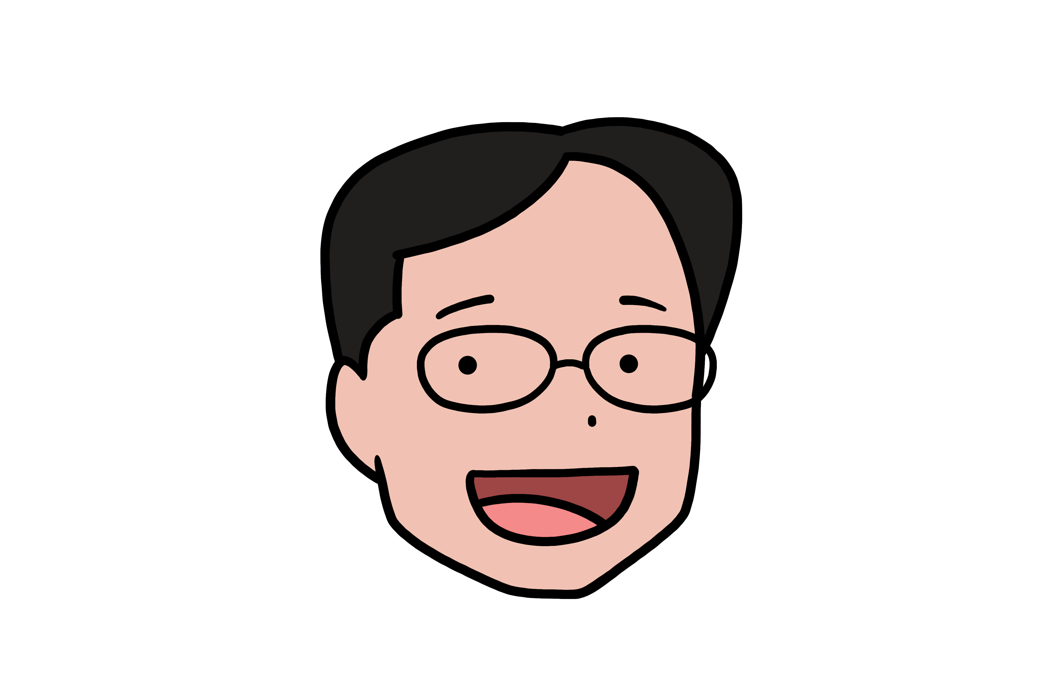 (左から)木下館長、喜夛学芸員、貴家学芸員、薄田学芸員、植松学芸員、古家学芸員 似顔絵 ©BakuKinoshita